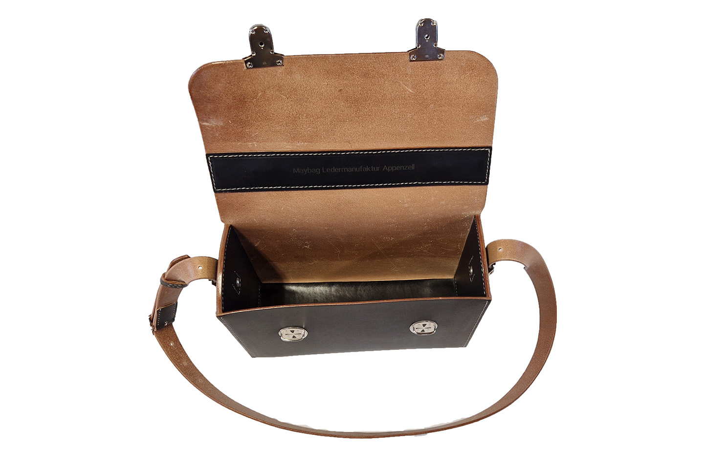 Die Lokführertaschen werden nach den Original-Schnittmustern der früheren SBB-Sattler in aufwendiger Handarbeit hergestellt. Die Tasche ist komplett von Hand genäht und es wird ausschliesslich Zeugleder aus der Schweiz verwendet.